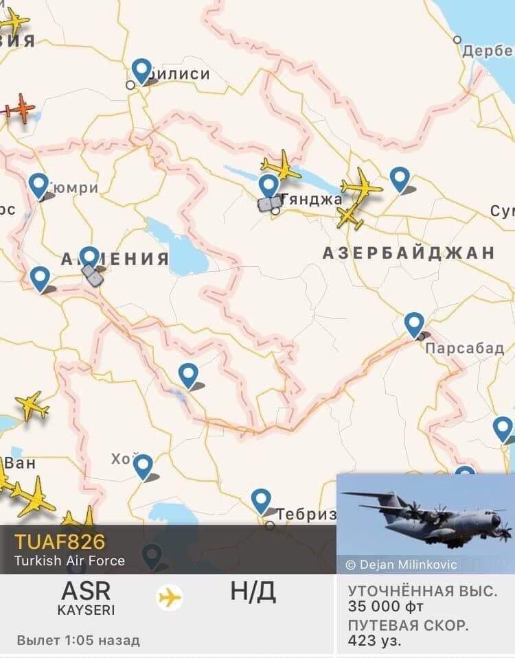 Երեկ ևս 5 ռազմական օդանավ է Թուրքիայից մեկնել Ադրբեջան։ Այսպիսով, միայն վերջին երկու օրվա ընթացքում այդ Ադրբեջան մեկնած թուրքական ռազմական օդանավարի թիվը հասել է 12-ի։ Հավանաբար, նախապատրաստվում է Ադրբեջանում Թուրքիայի ռազմաբազայի հիմնումը։