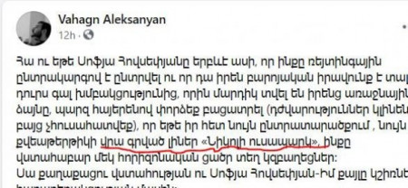 Դերենիկ Մալխասյանի ֆեյսբուքյան էջից