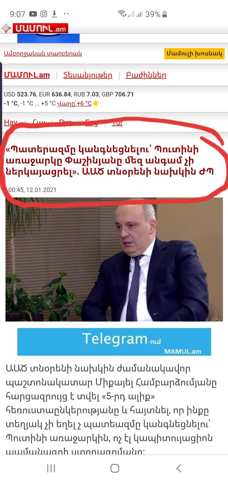 Ըստ Համբարձումյանի դավաճան Նիկոլը պատերազմի օրերին ո՛չ իրեն, ո՛չ էլ անվտանգության խորհրդի նիստերի ժամանակ տեղյակ չի պահել Ռուսաստանի նախագահ Պուտինի զինադադար հաստատելու առաջարկի մասին ( ի դեպ, Պուտինը մի քանի անգամ է զինադադարի հաստատման առաջարկներով հանդես եկել, որոնք բոլորը մերժվել են ազգադավ Նիկոլի կողմից)...