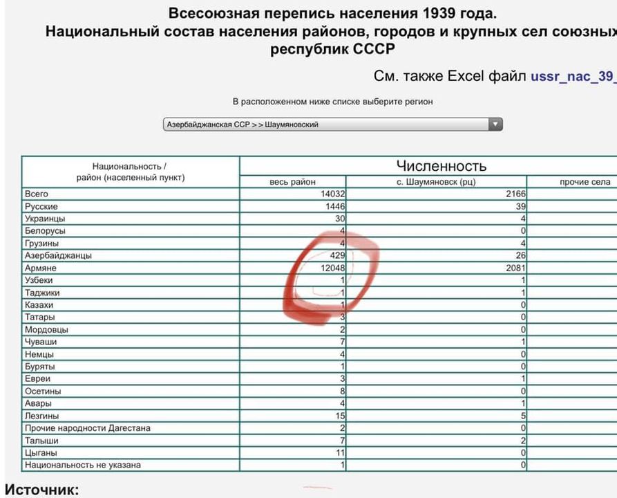 4. Եթե այս ամենի մասին գերագույն գլխավոր տգետը տեղյակ չէ, ապա պատրա՞ստ է հայտնի անեկդոտի տաքսու ուղևորի նման (վարպե՛տ, նոր եմ իմացել, որ Մասիսը մերը չի, քշի՛ Թուրքիա) ձեռքը վերցնել, օրինակ, 1939 թ. մարդահամարի կցված այս երկու տվյալներն ու Ալիևի հետ հաջորդ հանդիպման ժամանակ պահանջել Հայաստանին վերադարձնել Շահումյանի ու Խանլարի շրջանները՝ ճիշտ նույն հիմնավորմամբ:
