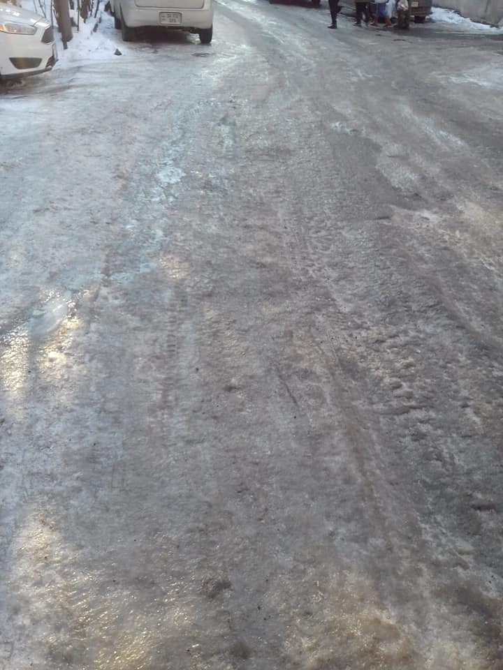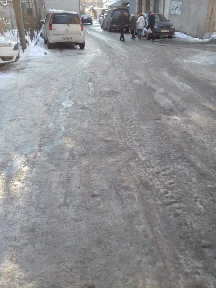 Սիրելի Երևանի քաղաքապետարան / Yerevan Municipality, կասե՞ք` ինչքան պետք է լինի իմ վճարած հարկը, որպեսզի ես իմ քաղաքում` իմ փողոցի վրա չմեռնեմ։ Ասեք, եթե պետք է` ինչ-որ հավելավճար անեմ, որ Սունդուկյան փողոցն ամբողջությամբ լցնեք ավազով։ Հա, ի դեպ, նկարում պատկերված մարդիկ իրար անծանոթ են, և ձեռք ձեռքի բռնած քայլում են, որ չընկնեն, քանի որ հենց նոր են սառույցից բարձրացրել ճերմակ մազերով կնոջը։