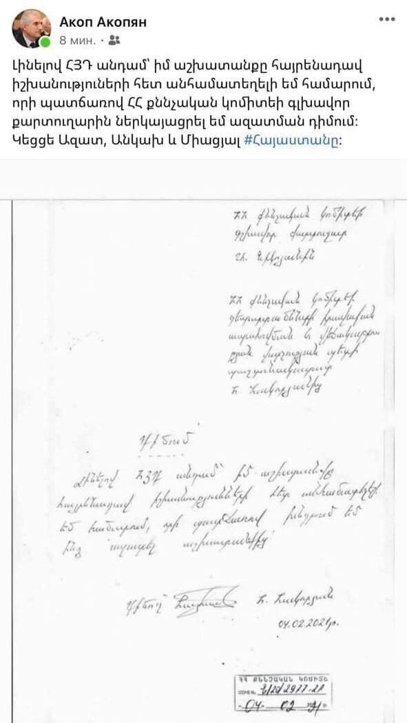 Հակոբ Հակոբյանի ֆեյսբուքյան էջից