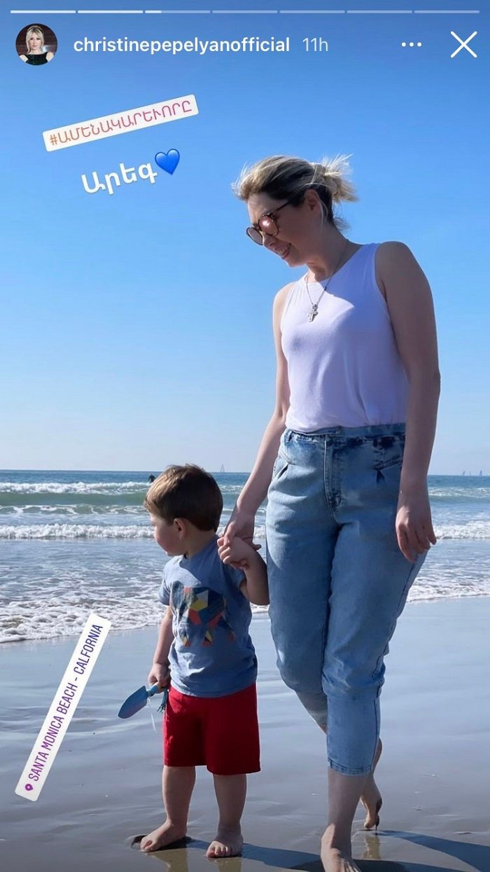 Instagram-յան էջի Stories բաժնում, ուր ցանկացած տեղեկատվություն հասանելի է միայն 24 ժամ, ինչից հետո անհետանում է, հրապարակված կադրերում երգչուհին պատկերված է որդու՝ Արեգի հետ։ Երիտասարդ մայրիկը բռնել է փոքրիկի ձեռքը, կադրերն, ըստ սոցիալական ցանցում արված նշման, արվել են Կալիֆոռնիայում։ «Ամենակարեւորը»,- հրապարակման մեկնաբանություններում այս հեշթեգն է օգտագործել երգչուհին։