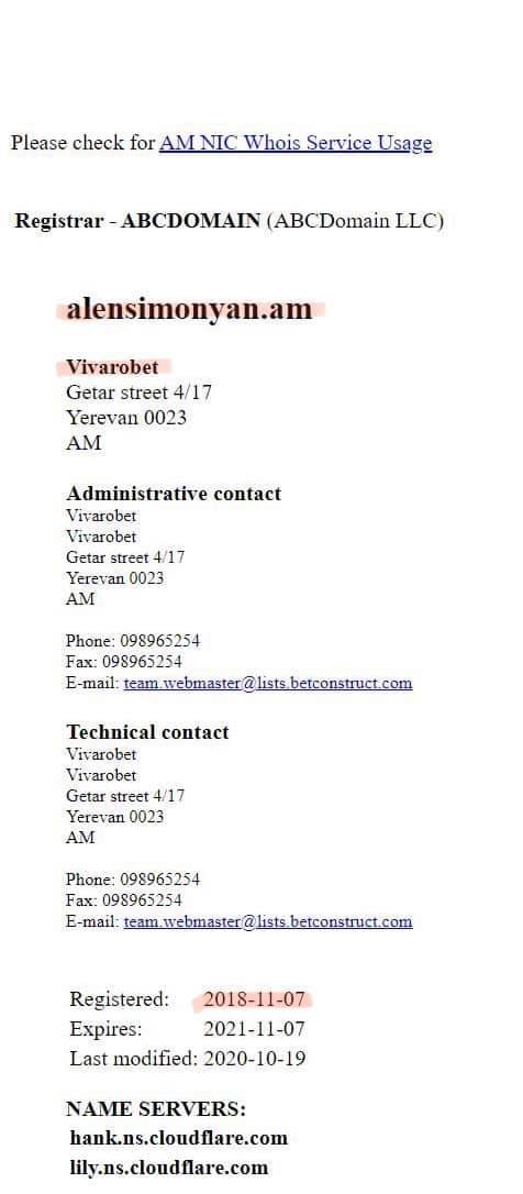 «Կոռուպցիան դա մի բան է, երբ ԱԺ փոխխոսնակի կայքի դոմեյնը գնվում և նվիրվում է Վիվառոյի կողմից: Թե ինչ ծառայություններ է մատուցել Ալեն Սիմոնյանը 2018 թվականի նոյեմբերի 7-ին բուքմեյքերական գրասենյակին մնում է անհայտ: