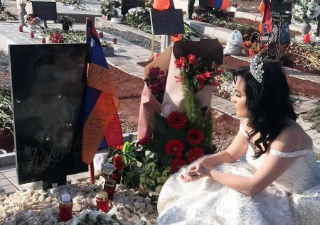Պատերազմի հերոս Իշխան Պետրոսյանի դստեր՝ Թագուհու պսակադրությունն է:
