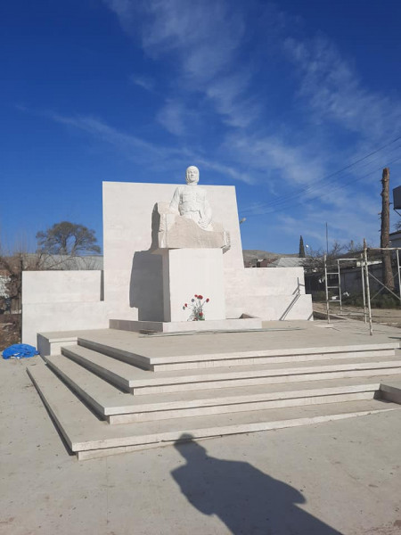 Մեր աղբյուրն ասաց, որ արձանի պատվանդանը կառուցվել է անցած տարի, սեպտեմբերին պետք է տեղադրվեր կիսանդրին, բայց պատերազմը խանգարել է, եւ այն տեղադրվել է 2021-ի հունվարի 25-ին, սակայն պաշտոնական բացման արարողություն չի եղել։ «Կիսատ աշխատանքներ կան, պետք է ավարտենք, նոր բացումն անենք։ Փողոցը, որտեղ տեղադրվել է, պետք է ասֆալտապատեինք, բայց պատերազմը սկսվեց՝ չարեցինք, եկող տարի է նախատեսվում։ Արձանի երկու կողմը քանդված է, քանդակագործը պիտի գա՝ տեղում շտկի։ Ես չգիտեմ՝ ով էր ինքնագլուխ գնացել, արձանը բացել, ու նման խոսակցություններ տարածվեցին»,- ասաց քաղաքապետը։
