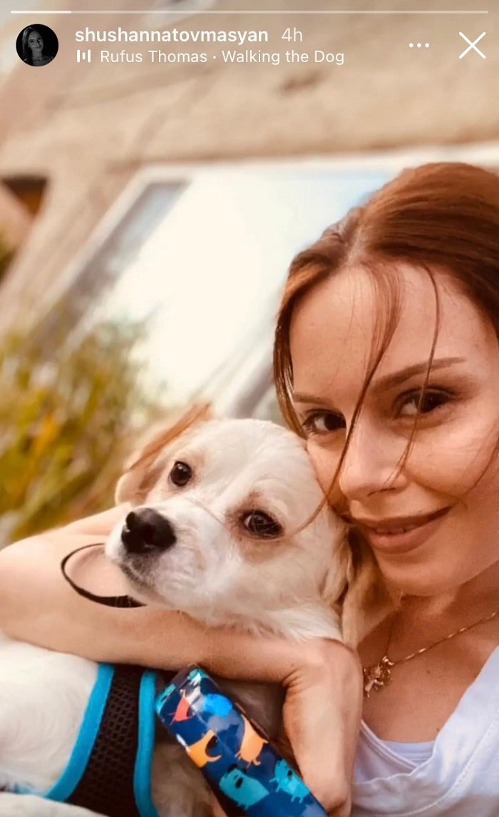 Իր միկրոբլոգի Stories բաժնում, ուր ցանկացած տեղեկատվություն հասանելի է միայն 24 ժամ, ինչից հետո անհետանում է, հրապարակված կադրերում դերասանուհին, որը հունվարին առաջին անգամ մայր է դարձել, պատկերված է շան հետ։ Նա հավաքել է մազերն ու նվազագույն շպարով է։ Հրապարակումը մեկնաբանված չէ։
