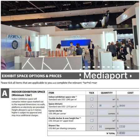Հատկանշական է, որ էքսպոյին տաղավար վարձելը հսկայական ծախսեր է ենթադրում․ IDEX 2021-ի կայքից տեղեկանում ենք, որ էքսպոյին մասնակցելու վճարի չափը պայմանավորվում է վարձակալած տաղավարի տեսակով, մակերեսով և կազմակերպությունների թվով․ դատելով նկարից՝ Հայաստանի վարձակալած տաղավարը բացօթյա չէ, ավելի քան 30մ/ք տարածք է զբաղեցնում, իսկ նախարարության կայքից իմանում ենք, որ ցուցահանդեսին Հայաստանից մասնակցում են 14 ընկերություններ։