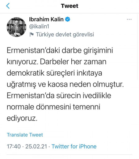 Ձեր համար զարմանալի չէ՞ որ թուրքիան միակ երկիրն է մոլորակի վրա որ դատապարտել է Հայաստանի Հանրապետության Զինված Ուժերի հայտարարությունը... այսօր արդեն երկրորդ պաշտոնական հայտարարությունն է... առաջինը Ագնից իսկ հիմա նախագահի խոսնակից...