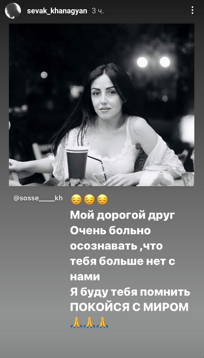Երգիչ Սեւակ Խանաղյանն իր Instagram-ի Stories բաժնում, ուր յուրաքանչյուր ինֆորմացիա հասանելի է միայն 24 ժամ, ինչից հետո ջնջվում է, նոր գրառում է կատարել՝ անդրադառնալով իր «Արցախ» ստեղծագործության խոսքերի հեղինակ՝ Սոսի Խանիկյանի մահվանը։