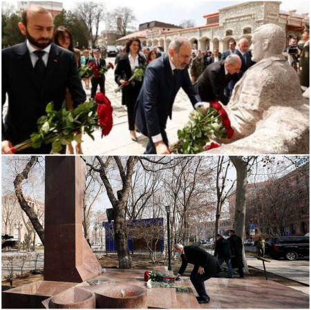 Հիշեցնեմ, որ 2019 թ֊ին մայիսյան եռատոնների կապակցությամբ Արցախում գտնվող Նիկոլն ու իր պատվիրակությունը Շուշիում ծաղիկներ էին խոնարհել Վազգեն Սարգսյանի արձանին, որից ընդամենը 1,5 տարի անց դավաճան Նիկոլի կողմից այն հաձնվեց թուրքերին... Նիկոկի կողմից «դժբախտ» և «դժգույն» որակավորված Շուշի բերդաքաղաքում մնաց նաև Վազգենի արձանը, որը թուրքերը պղծեցին և քանդեցին...