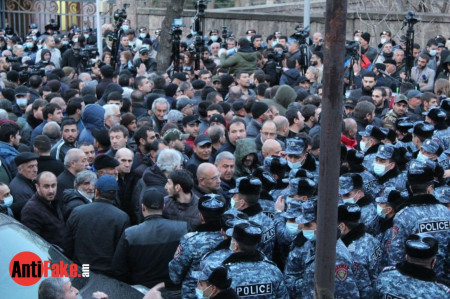 Իրավիճակը Բաղրամյանում լարված է։ Նախագահի կայացրած որոշումից հետո քաղաքացիները, հանրահավաքի մասնակիցները փորձում են շրջափակել Ազգային ժողովի շենքը, սակայն ոստիկանները դա նրանց անել թույլ չեն տալիս։ Քաղաքացիների մի մասն էլ Դեմիրճյան փողոցում է։