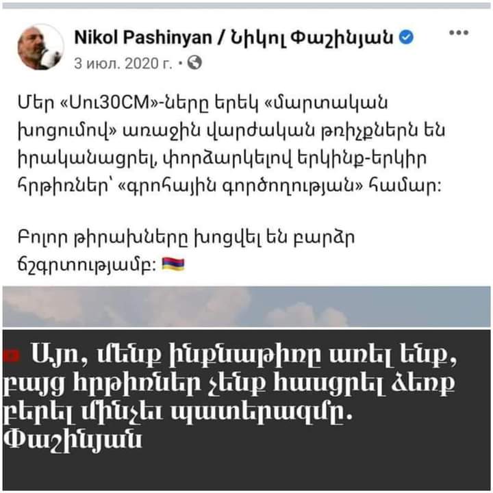Էս մարդը կեղծել է ամեն ինչ` պատերազմ, իր անցյալը, ներկան, մեր պատմությունը, զոհերի, գերիների, հաշմանդամություն ունեցող անձանց, անհեր կորածների թիվը, բայց ընտրություններն իր վերարտադրվելու համար չի կողծելո՞ւ...