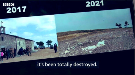 Strongly condemn yet another act of cultural #crime by #Azerbaijan. As BBC found out #Armenia/n church disappeared after Azerbaijani got control over it. Destruction was complete. The same church was vandalized during the recent