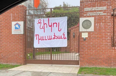 Так, на воротах генконсульства Армении в Глендейле появился постер «Никол — предатель».