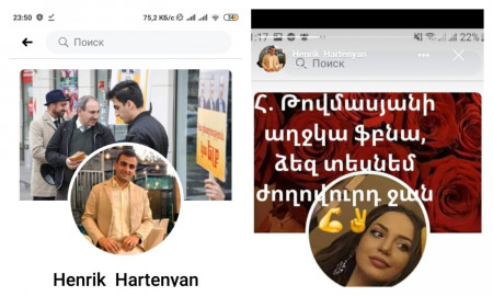 Преследование на государственном уровне бывает таким. Человек, в чьем профиле указано «член Совета старейшин», который на самом деле является членом фракции «Мой шаг» Совета старейшин Еревана, публикует в своем «сториз» скрин страницы дочери Грайра Товмасяна и пишет: «Покажите себя, народ».