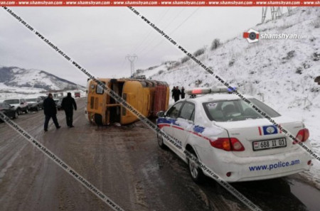 Автомобильная авария произошла во вторник утром в Лорийском марзе Армении. Автобус, перевозивший людей на швейную фабрику «Глория», перевернулся на дороге Ванадзор-Спитак.