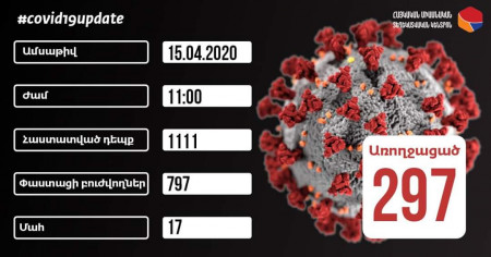 По положению на 11:00 15 апреля в Армении зарегистрировано 1 111 подтвержденных случаев коронавируса, зарегистрировано 17 летальных случаев (случаи увеличились на один). 9 095 тестов дали отрицательный результат. Число выздоровевших пациентов увеличилось на 32 и общее число вылечившихся достигло 297. На данный момент фактическое лечение получают 797 пациентов.