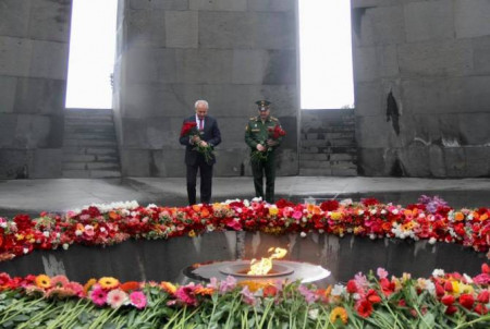 По случаю 105-й годовщины Геноцида армян Чрезвычайный и Полномочный посол России в Армении Сергей Копыркин и военный и военно-воздушный атташе при посольстве А.В.Грищук 23 апреля в мемориальном комплексе Цицернакаберд возложили венок к монументу, а также цветы к Вечному огню.