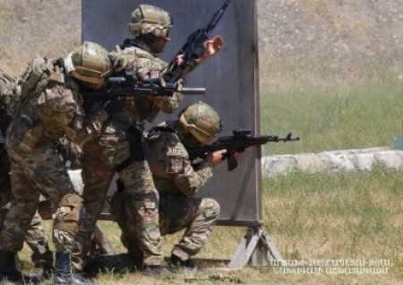 Президент Республики Арцах Араик Арутюнян 14 июня в сопровождении директора Службы национальной безопасности Камо Агаджаняна присутствовал на учебной антитеррористической тренировке и занятиям по стрельбе подразделения специального назначения СНБ.
