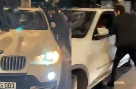 Ранее распространилось видео, на котором несколько человек избивают мужчину сидящего в машине и разбивают стекла автомобиля.