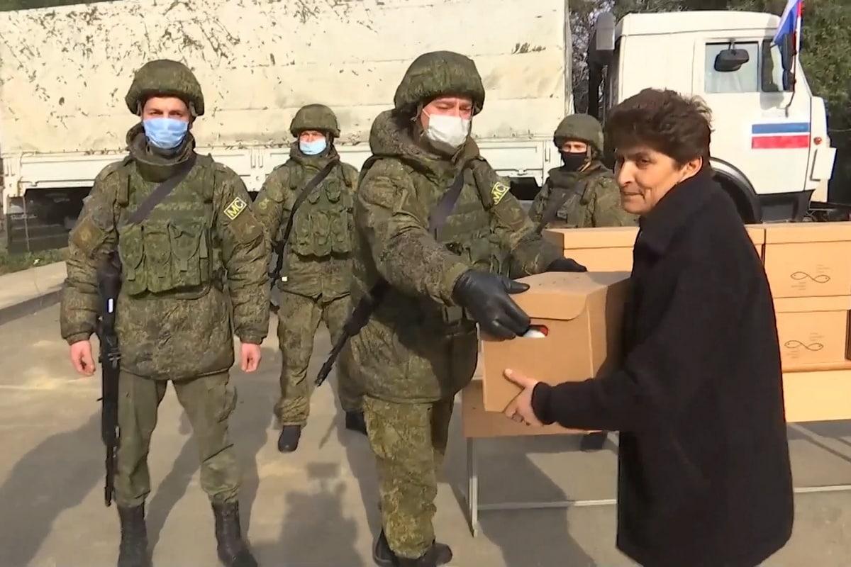 Военнослужащие российского миротворческого континента в Нагорном Карабахе доставили гуманитарные наборы с продуктами питания и предметами первой необходимости в город Мардакерт. Об этом сообщает Минобороны РФ.