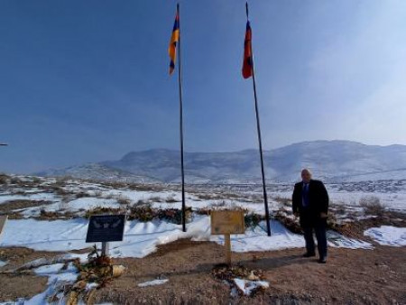 Делегация во главе с руководителем правления фонда «МИР» Андраником Никогосяном совместно с представителями Араратской области посетили мемориал «Холм Памяти», посвященный погибшим русским лётчикам «Ми-24» авиабазы Эребуни и возложили цветы.