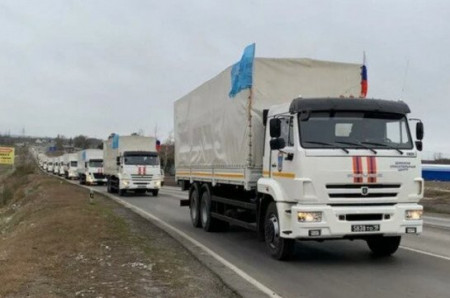 Очередная колонна с гуманитарной помощью МЧС России направилась во вторник утром из Еревана в Нагорный Карабах, передает корреспондент РИА Новости.