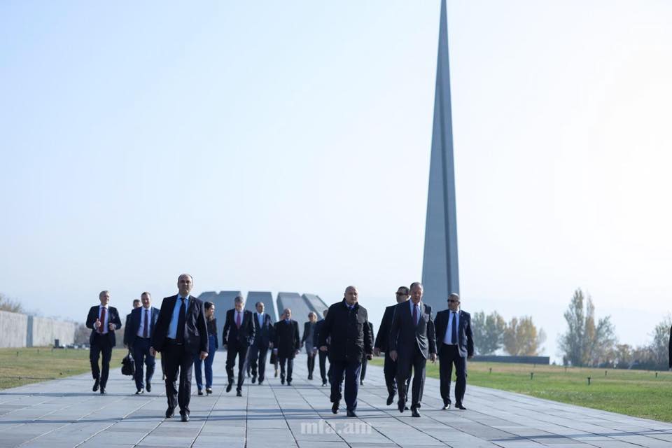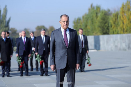 В рамках официального визита в Армению министр иностранных дел РФ Сергей Лавров посетил мемориальный комплекс Цицернакаберд, где воздал дань уважения памяти жертв Геноцида армян.