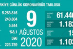 Թուրքիայում օգոստոսի 9-ին կորոնավիրուսից (Covid-19) մահացել է 15 մարդ։ Այդ մասին «Twitter» միկրոբլոգի իր պաշտոնական էջում հայտնել է Թուրքիայի առողջապահության նախարար Ֆահրեթթին Քոջան։ Նա նշել է, որ 1 օրում կատարված 61․446 թեստի արդյունքում հաստատվել է կորոնավարակի 1․182 նոր դեպք։ Նույն ժամանակահատվածում գրանցվել է ապաքինման 1.103 դեպք: Ըստ պաշտոնական տվյալների` մինչև օրս համավարակից ապաքինվել է 223.759 մարդ,...