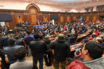 Եկեղեցու դեմ Փաշինյանի արշավին մասնակցողները շիրիմներ են անարգում և ոտքով հարվածում են Մայր Տաճարի դռանը (տեսանյութ)