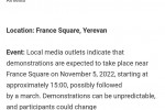 Նոյեմբերի 5-ի Հանրահավաքն ինձ համար առանձնահատուկ է դառնում բոլոր առումներով։ Քիչ առաջ մայրս, որ ամեն վայրկյան ապրել է մեր երկրում տեղի ունեցածով, անհանգստացել, արտասվել, ցավ ու կորուստ ապրել, բայց երբեք չէր մասնակցել հանրահավաքի, հանկարծ ինձ հայտնում է, որ գալու է հանրահավաքի։