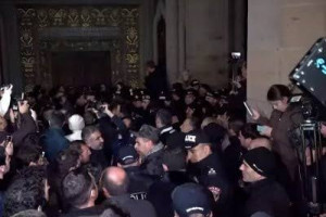 Մայր Աթոռի բակում հազարավոր մարդիկ վանկարկում են՝ «Վեհափառ»
