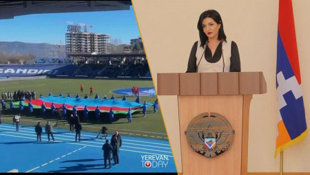 «ալիևն է ու ադրբեջանական փալասը Արցախի Հանրապետության մայրաքաղաքի մարզադաշտում: Ոտքով, որին ուժ ու ամրություն հաղորդեցին 2018 թ.-ին Հայաստանի Հանրապետության իշխանությունը զավթածները, քոչվոր ցեղի առաջնորդը հարվածում է հայկականությանը, հայի արժանապատվությանը, լինելիությանը: Այս հարվածը խորհուրդ ունի առ այն, որ խաղն ավարտված չէ, որ ալիևը Հայաստանի իր եղբոր հետ շարունակելու է զավթել, հայրենազրկել, ոչնչացնել հային: Հրապարակի տոնական հրավառությունը վկա, մենք կվերանանք, եթե Հայաստանի Հանրապետությունը չղեկավարեն ազգային ուժերը: