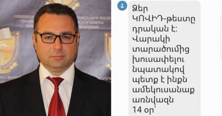 Առողջապահության նախարարությունից հաղորդագրություն եմ ստացել, որ իմ կովիդ թեստի արդյունքը դրական է. ամեն ինչ իդեալական կլիներ, եթե չլիներ այն հանգամանքը, որ ես թեստ չեմ հանձնել