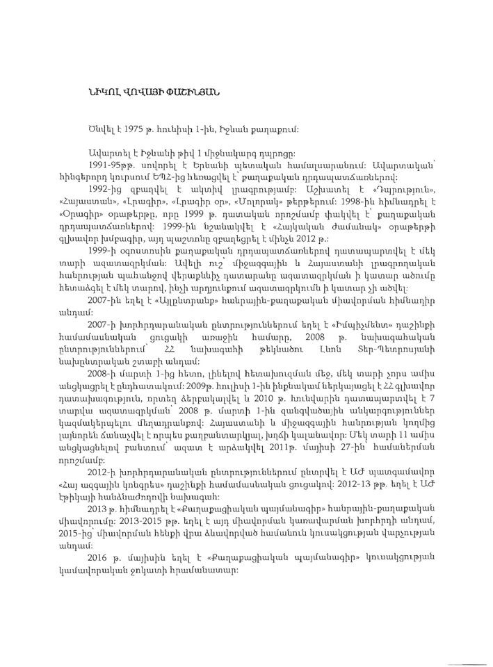 ԱԺ-ի կայքում հրապարակվել է «Իմ քայլը» խմբակցության կողմից ներկայացված ստախոսի կենսագրականը: Մի քանի ուշագրավ ու զավեշտական կետեր նույն կենսագրականից: