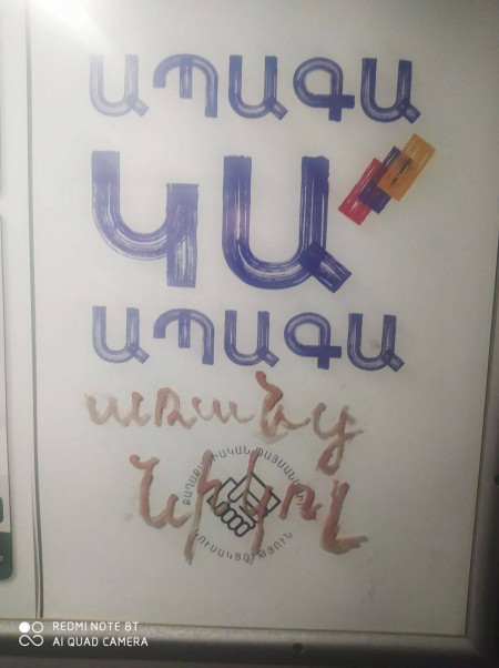 «Ապագա կա՝ առանց Նիկոլ». քաղաքացիները խմբագրել են ՔՊ նախընտրական պաստառը. Օրվա կադր 6 Մայիս, 2021 15:44 Поделиться «Ապագա կա՝ առանց Նիկոլ». քաղաքացիները խմբագրել են ՔՊ նախընտրական պաստառը:
