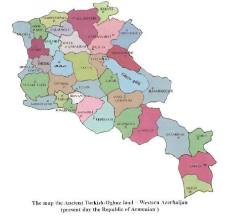 • Ձեզ հետաքրքրո՞ւմ է, թե ինչ քարտեզներով է իրականացվում Հայաստանի հողերի հանձնումը։ Ա՛յս քարտեզով։ Ադրբեջանական ա՛յս քարտեզով, որտեղ ՀՀ տարածքը ներկայացվում է որպես «պատմական թյուրք-օղուզական հող», որտեղ Ստեփանավանը Ջալալօղլի է, Նոյեմբերյանը՝ Բարանա, Աբովյանը՝ Էլար, Սուրբ Էջմիածինը՝ Ուչքիլիսա, Սիսիանը՝ Ղարաքիլիսա և այլն։
