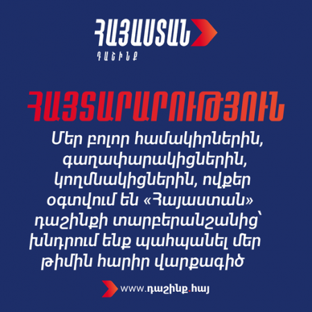 «Հայաստան» դաշինքի կենտրոնական շտաբի պաշտոնական ներկայացուցիչ Արամ Վարդևանյանի հայտարարությունը