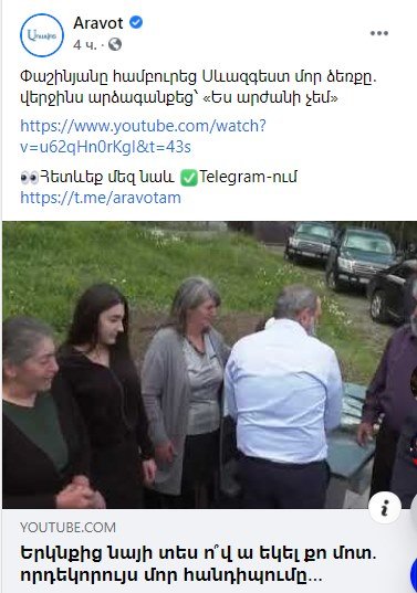 «փաշինյանը համբուրեց սևազգեստ մոր ձեռքը․ վերջինս արձագանքեց՝ «Ես արժանի չեմ»...»