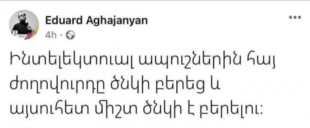 Դավաճան Նիկոլի Էդիկ, այ՛, Էդիկ, հայտնի գրող֊երգիծաբան Միխայիլ Ժվանեցկին այս խոսքերը քո նման ինտելեկտ ատողների մասին է ասել. «Братья! Интеллект в опасности!Он уже не просто никому не нужен, он вызывает вражду»: