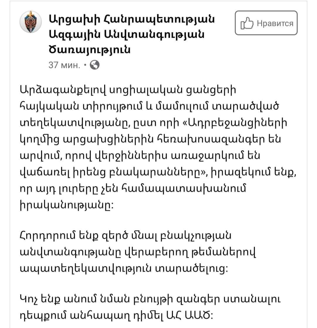 Արցախի ԱԱԾ-ն ճիշտ ա ասում` ուշադիր և զգոն եղեք, անպայման հետևեք իրենց կոչերին և զերծ մնացեք նմանատիպ կասկածելի հեռախոսազանգերին պատասխանելուց