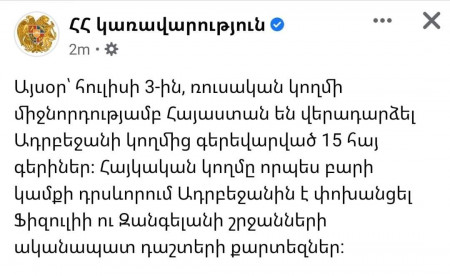 Հաշվի առնելով այն հանգամանքը, որ Հայաստանը շարունակում է ղեկավարել հայ ժողովրդի ամենամեծ թշնամին և ամենամեծ դավաճանը՝ Նիկոլ Փաշինյանը, կարելի է վստահաբար պնդել, որ 2021 թվականի հուլիսի 3-ին ոչ թե տեղի է ունեցել գերիների վերադարձ, այլ թշնամուն ականապատ դաշտերի քարտեզների փոխանցման պետական դավաճանություն, իսկ դրա դիմաց, դեռևս պաշտոնապես չհայտարարված գերիների ընդամենը մի քանիսի վերադարձը, նպատակ ունի հասարակական հուզական տրամադրությունների ստեղծման միջոցով՝ քողարկել կատարված հանցագործությունն ու հայրենիքի դավաճանությունը։ Ի դեպ, ՀՀ կառավարությունը ոչ միայն պաշտոնապես հաստատել է այդ տեղեկությունը, այլև այն ներկայացրել է իբրև «բարի կամքի դրսևորում», իսկ տարածքները ներկայացրել ոչ թե հայկական (Վարանդա և Կովսական), այլ ադրբեջանական (Ֆիզուլի և Զանգելան) տեղանուններով։ Սա արդեն երկրորդ դեպքն է, երբ կատարվում է պետական դավաճանություն, քանի որ նախընտրական քարոզչության ընթացքում Նիկոլ Փաշինյանը, չնայած որ հայտարարեց, որ գերիների վերադարձի համար պատրաստ է տրամադրել իր որդուն, սակայն, իրականում տրամադրեց պետական հույժ գաղտնի համարվող տեղեկություններ, և նաև հայտարարեց, որ պատրաստ է այդ գործողություններին հաղորդել շարունակական բնույթ, ինչը ցավոք, հերթական անգամ, անտեսվեց Ազգային անվտանգության մարմինների կողմից, որոնք շատ ավելի պրիմիտիվ և պարզ դրվագներով, պետական դավաճանության մեղադրանքներ են ներկայացնում Նիկոլ Փաշինյանի ընդդիմախոսներին։