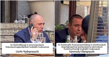 Նկարում ձախից՝ Արցախի էկոնոմիկայի և արտադրական ենթակառուցվածքների նախարար Լևոն Գրիգորյանն է, աջից՝ Արցախի հանրային ծառայությունները և տնտեսական մրցակցությունը կարգավորող պետական հանձնաժողովի նախագահ Արտակ Միրզոյանը։ Սրանք պատերազմի օրերին Արցախից փախել, եկել Երևանի կենտրոնի սրճարաններից մեկում սրճում էին, ու ինչ որ մեկը լրի՜վ պատահմամբ նկարել էր իրանց, աղմուկ բարձրացրել ու սրանց հանդիսավոր ազատեցին աշխատանքից։