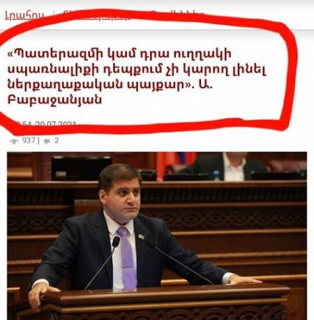 Իյա, իրո՞ք... Այն օրից, երբ Նիկոլ Անհողը հայտարարեց, որ Արցախը դա Հայաստան և վե՛րջ` դիտավորյալ փլուզելով Մինսկի խմբի բանակցային ֆորմատը` Հայաստանը պատերազմի վտանգի մեջ է, որի ակտիվ փուլը սկսցեց 2020 թ֊ի սեպտեմբերի 27֊ին և շարունակվում է նույնիսկ 2020թ֊ի նոյեմբերի 9֊ի խայտառակ կապիտուլյացիայից հետո ու դեռ կշարունակվի, քանի դեռ Հայաստանը ղեկավարվում է թուրքի կողմից ծնկված Նիկոլն ու իր թիմը... Բաքուն ամենն ինչ կցանկանան ու Անկարան Նիկոլից մաքսիմալ ստանալու են այն ամենն ինչ կցանկանան ու վերջինս բավարարելու է իրեն հաղթածների ցանկությունները...