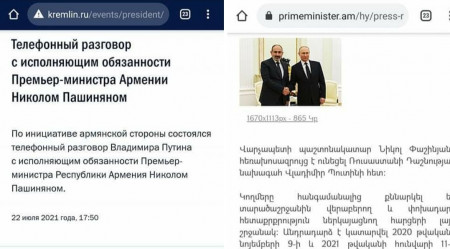 Ռուսաստանի Նախագահի պաշտոնական կայքում շեշտվում է, որ հեռախոսազրույցը տեղի է ունեցել հայկական կողմի նախաձեռնությամբ, ինչի մասին հիշատակում չկա մյուս կողմի աղբյուրում: Երկու աղբյուրների էական տարբերությամբ տեղեկատվությունը եւ ռուսական աղբյուրի խիստ լակոնիկ լինելը շատ ավելի խոսուն է։