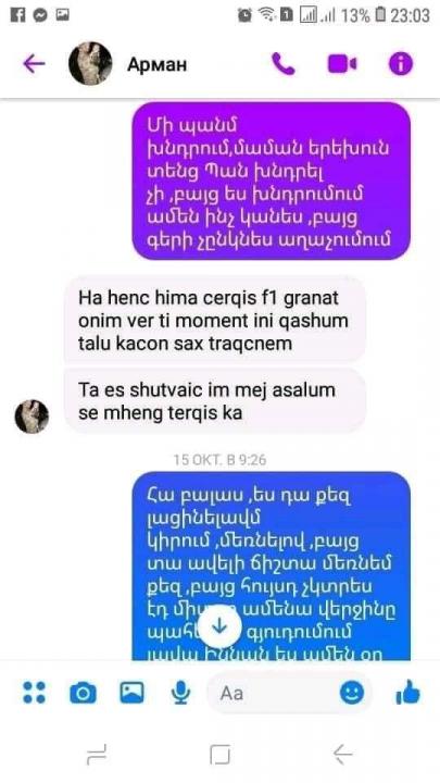 «Նորմալ ա սաղ, պետք չի վախենալ, ուղղակի իմացի՝ փաշինյանը ծախել ա էս հողերը ու իմ նման լիքը տղերքի կյանքերն էլ հետը»։ Այս նամակը Արմանը մորը գրել էր հոկտեմբերի 1-ին, Ջրականից։ 20 օր անց նա զոհվեց...