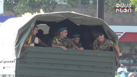 Զինվորական անշուք քայլերթի մասնակիցներին պողոտայից հեռացրեցին բեռնատարներով. Տեսանյութ