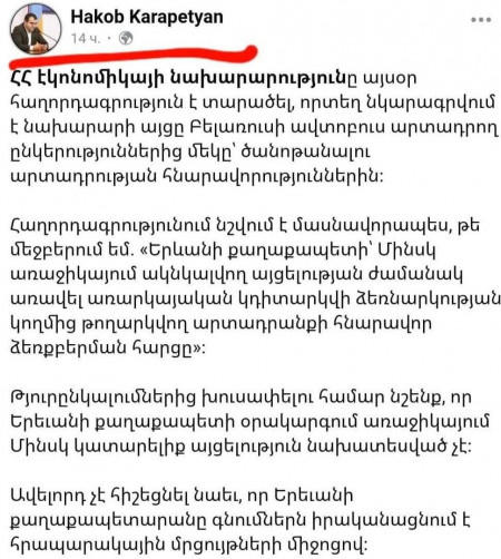 Զավեշտ.Երևանի քաղաքապետի մամլո խոսնակը բացահայտում է Էկոնոմիկայի նախարարության ստերը։