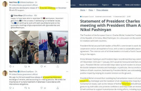 Հայ ռազմագերիներին նման ձևակերպում տալով, ԵԽ նախագահ Շառլ Միշելից հետո հիմա էլ ԱՄՆ-ն հաստատում է նոյեմբերի 16-ի ռազմական գործողությունների հետ կապված ադրբեջանական վարկածը, իբր թե հայկական կողմն է ագրեսիա իրականացրել, իսկ իրենք իրենց տարածքում կալանավորել են հայ զինվորներին: